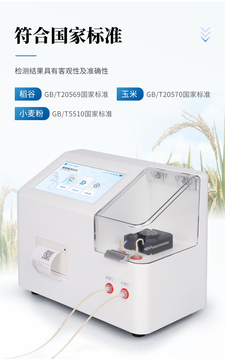 全自動脂肪酸值測定儀是針對脂肪酸值作為判斷儲糧品質劣變的重要儀器設備,是一種以電極電位突躍作為指示終點為控制依據的自動滴定裝置。主要用于測定稻谷、糙米、大米等糧食作物的脂肪酸值,是一種專用檢測設備。本儀器實現了滴定終點判定、計量、數據處理、測定結果顯示及打印功能自動化,提高了檢測結果的客觀性及準確性,具有操作簡單、使用方便的特點。