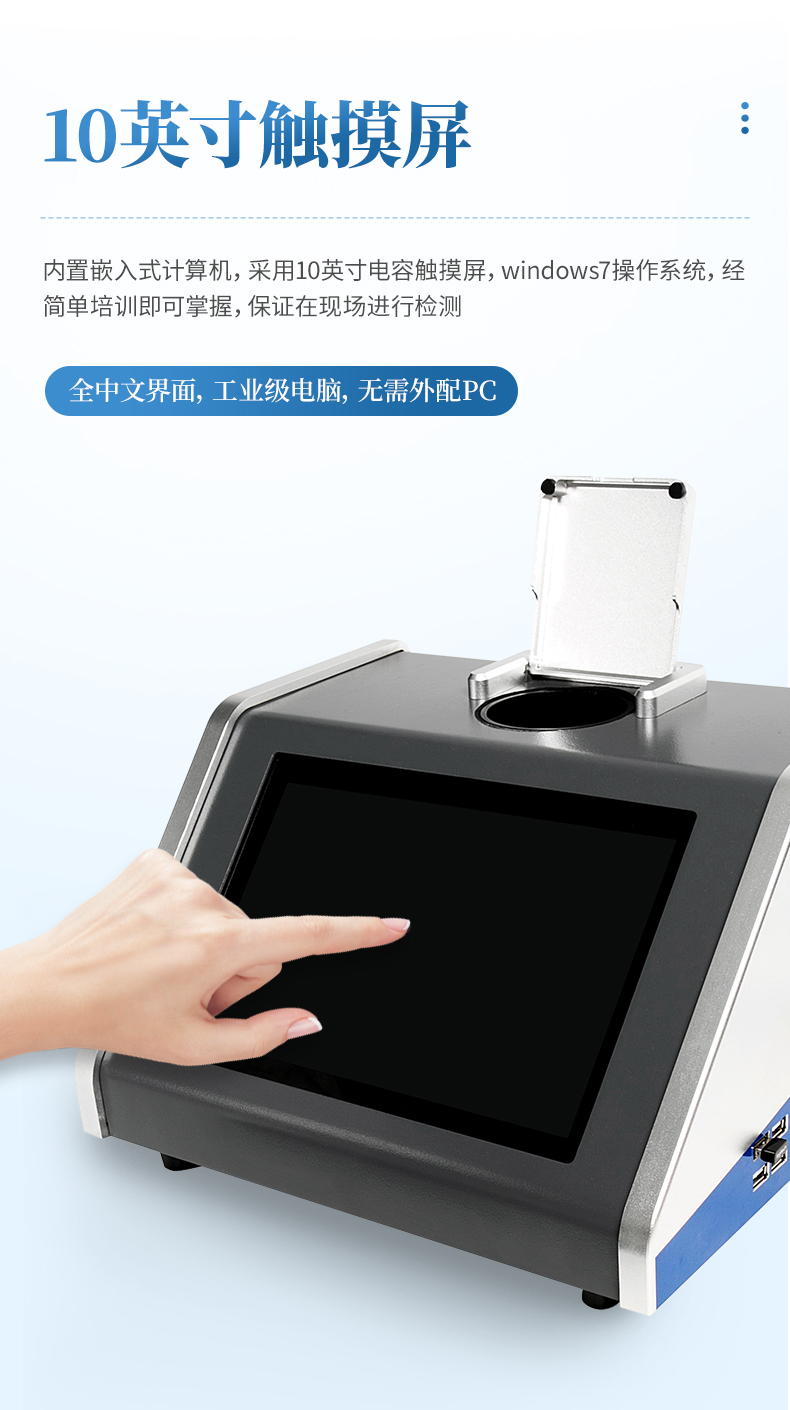 9、操作方便:采用10寸電容觸摸屏,windows7操作系統(tǒng),經(jīng)簡(jiǎn)單培訓(xùn)即可掌握
