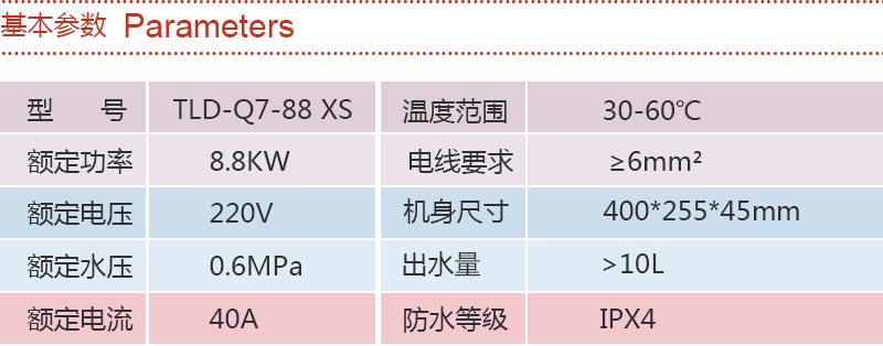 功率可調8.8/8.5/8.0/7.5/7.0/6.5kW